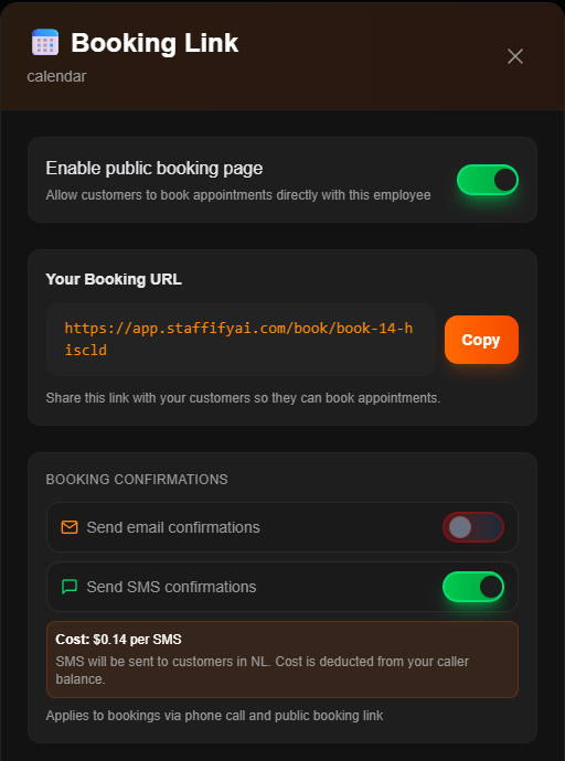 Automate your entire scheduling process with AI appointment employees. Book, reschedule, and cancel appointments through natural conversation, sync seamlessly with Google Calendar for real time availability, and share booking links for customer to self schedule. Send automatic confirmations and reminders, handle time zone conversations automatically, and prevent double bookings.